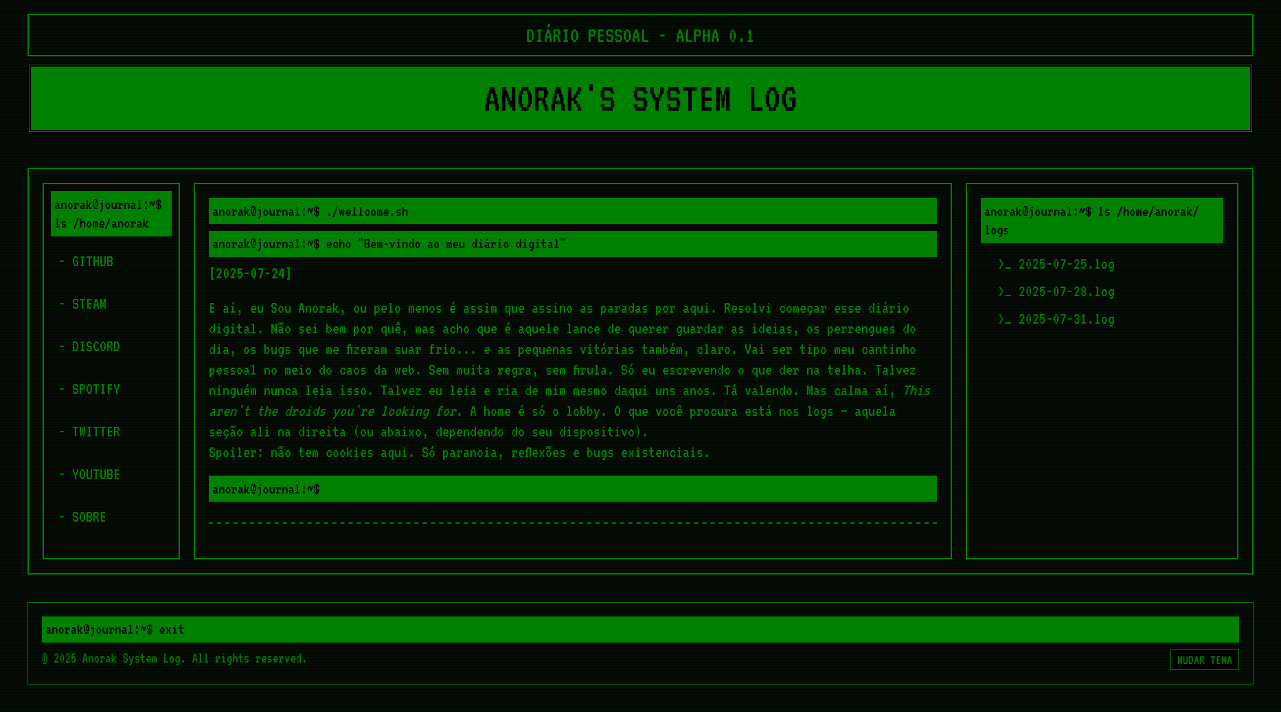 Aplicação projetada como diário online. Desenvolvido para praticar estruturação de páginas e estilo retrô minimalista.